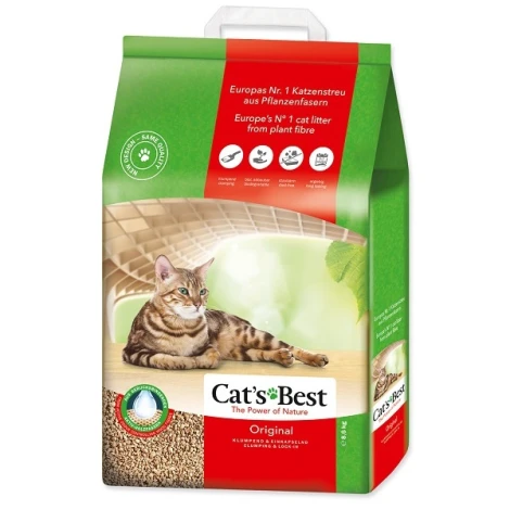 Prírodná hrudkujúca podstielka Cat's Best Original šetrí náklady, ľahko sa likviduje a prirodzene pohlcuje pachy aj vlhkosť bez akýchkoľvek chemických prísad a vôní. Tekutiny sú plne pohlcované vysoko kvalitnými ekologickými vláknami, je teda plne kompostovateľná. Pri jej použití strávite minimum času upratovaním mačacej toalety.