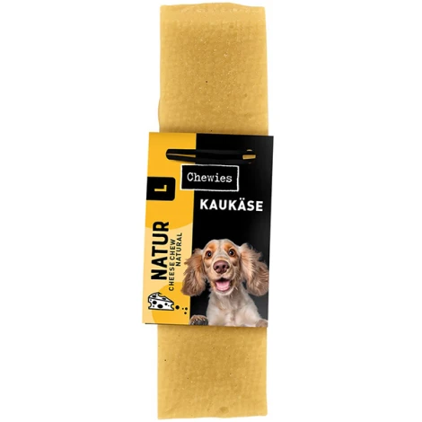 Chewies Cheese Chew Natural je ručne vyrábaná syrová vegeteriánska tyčinka, ktorá je vhodná najmä pre veľké psy. Je vyrobená z čerstvého kravského mlieka, ale vďaka špeciálnemu výrobnému procesu neobsahuje laktózu a má nízky obsah tuku. Pri výrobe sa nepoužívajú žiadne farbivá, arómy, konzervačné látky ani pridaný cukor. Okrem toho žuvanie tyčinky pomáha psom udržiavať zdravé zuby a ďasná.