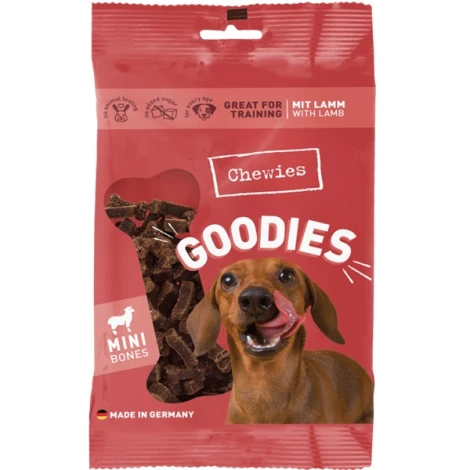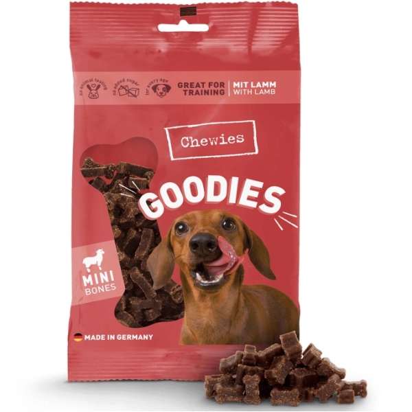 Ideálny pomocník pri výcviku - polomäkké šťavnaté kostičky pre psov s vysokým podielom mäsa a veľkosťou menšou ako 1 cm. Ideálne pri výcviku alebo ako chutná malá odmena. Vďaka jemnému jahňaciemu mäsu sú tieto kocky vhodné aj pre šteniatka. Chewies boli vyvinuté v spolupráci so psími školami a cvičiteľmi. Kocky sú vďaka vysokému podielu mäsa veľmi dobre znášané a psom chutia.