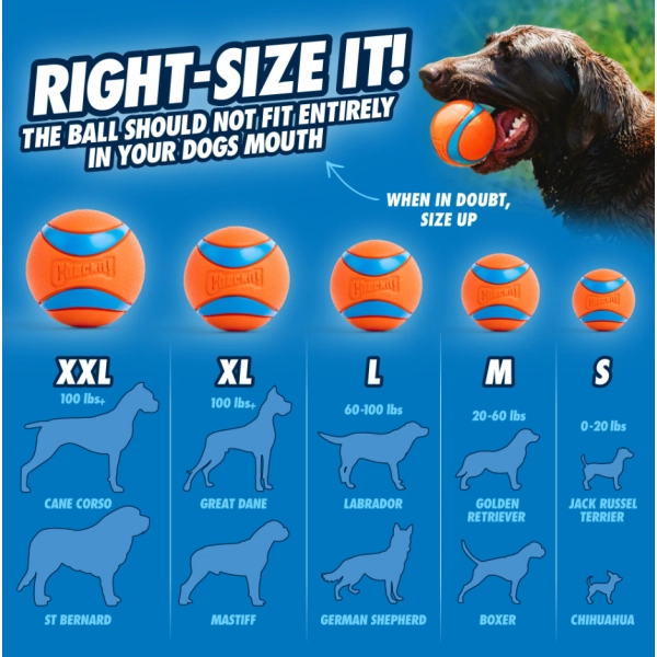 Chuckit! Ultra Ball je skvelá loptička, ktorá je odolná, pružná, výborne pláva a má odskok na jedničku. Dokonalo pasuje do hádzačov Chuckit!. Vyrába sa z prírodnej gumy, je teda šetrný k zubom psa. Výrazná farba vám pomôže loptičku ľahko nájsť vo vysokej tráve aj vode. Veľkostne je určený pre malé plemená psov.