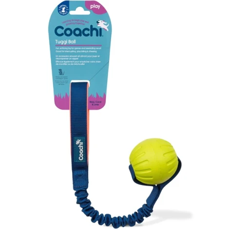 Loptičku Coachi Tuggi Ball s elastickou rukoväťou možno použiť ako motiváciu aj odmenu. Svoje miesto si nájde pri výcviku poslušnosti, aportovaní, na ihrisku agility alebo pri nácviku odloženia a odvolania. Je to ideálna pomôcka na upútanie pozornosti vášho psa a odnaučenie ho nežiaducemu správaniu.