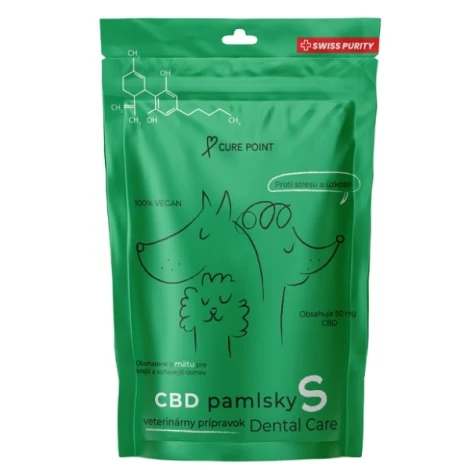 Pochúťky Cure Point Dental Care si vás získajú svojou neuveriteľne lákavou vôňou škorice a arašidového masla už pri prvom otvorení. Receptúra založená na tých najlepších surovinách obsahuje účinnú látku CBD (kanabidiol), ktorá má uvoľňujúci účinok a pomáha vášmu psovi zvládať stresové situácie (návšteva veterinára, cesta autom, odlúčenie, bujaré oslavy atď.). Mäta udrží svieži dych, pôsobí antisepticky a pomáha pri tráviacich ťažkostiach, bolestiach brucha alebo nevoľnosti. Jedna maškrta obsahuje 0,5 mg CBD vypestovaného vo Švajčiarsku.