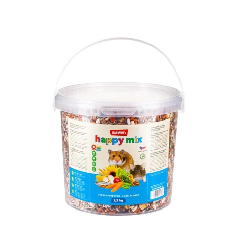 Darwins Happy Mix drobný hlodavec je komplexné a vyvážené krmivo pre škrečky, myšky, potkany a pieskomily. Zloženie obsahuje potrebnú živočíšnu zložku s extra zvýšeným podielom minerálov, vitamínov a ostatných živín.