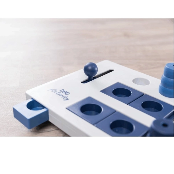 Inteligentná hra pre psov 3. úrovne - vhodné pre malých i veľkých psích hráčov! Prísť na riešenie celej hry nemusí byť úplne jednoduché a psík už potrebuje mať skúsenosti s inou, ľahšou úrovňou podobnej hry.