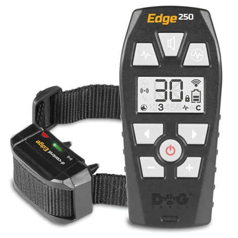 Elektronický výcvikový obojok Dogtrace d-control Edge 250 je vďaka svojej veľkosti vhodný pre stredné a veľké plemená psov. Tento obojok je určený predovšetkým na výcvik základných povelov a má dosah až 250 m. Vysielač dokonale padne do ruky a ponúka funkcie zvuku, vibrácií a korekčných impulzov, ktoré možno nastaviť v 30 úrovniach - od najjemnejšej po najsilnejšiu, podľa citlivosti vášho psa. Môžete si tiež vybrať medzi krátkym a dlhým impulzom. V krízových situáciách, keď hrozí nebezpečenstvo a vy potrebujete rýchlo reagovať, je k dispozícii aj funkcia posilňovača.