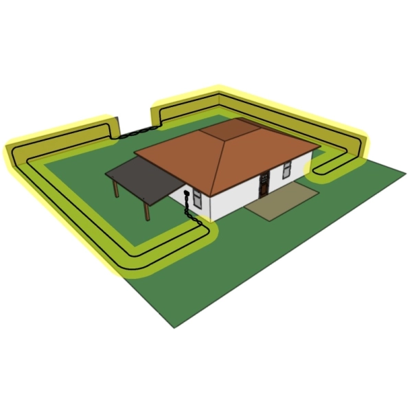 Zariadenie je vhodné pre akýkoľvek typ terénu a veľmi ľahko ho nainštalujete pomocou bežného náradia. Aby systém neviditeľného plotu správne fungoval, musí byť drôt pripojený k vysielaču a tvoriť neprerušenú slučku drôtu (vyvarujte sa jeho poškodeniu). Od vysielača rozviniete drôt okolo vášho pozemku. Drôt môže byť umiestnený na zemi, plytko zakopaný (max. 10 cm hlboko) alebo pripevnený na existujúci plot alebo stenu (v tomto prípade max. do výšky 30 cm nad zemou). V štandardnom balení je 100 m anténneho drôtu. Ak potrebujete viac ako 100 m, môžete si u nás dokúpiť ďalšie balenie a drôt potom pomocou zárezových konektorov spojíte (zárezové konektory sú súčasťou základného balenia). Ak chcete, aby pes mohol voľne prechádzať určitým miestom na vašom pozemku, ktorým musíte viesť drôt, naviniete odchádzajúci drôt okolo prichádzajúceho, skrútenie vodičov okolo seba spôsobuje vyrušenie emitovaných vĺn a pes sa môže týmto miestom voľne pohybovať. Napätie v anténe neprekračuje 12 V, nehrozí teda žiadne nebezpečenstvo aj pri eventuálnom prerušení vodiča. Pre lepšiu orientáciu je možné označiť vymedzený priestor terčíkov.