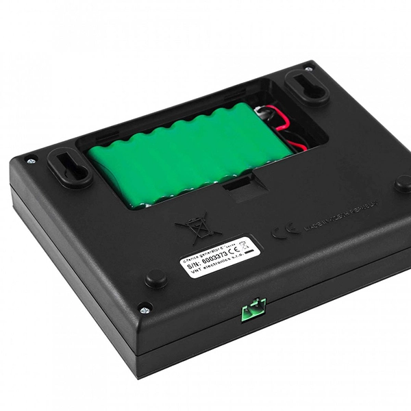 - záložný akumulátor 9,6 V, ktorý slúži ako záložný zdroj pre prípad výpadku sieťového napájania, je schopný dodávať napätie vysielaciemu generátoru až po dobu 16 hodín