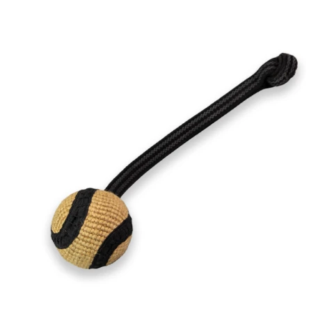 Aportovacia jutová loptička pre psa so šnúrkou slúži ako vrhacia hračka, ktorá je ručne vyrobená z prírodného materiálu. Loptička je veľmi tvrdá, nedá sa stlačiť, a preto je takmer nemožné, aby ju pes prehrýzol. Každá hračka sa mierne líši z dôvodu ručnej výroby, uvedené rozmery sú len približné.