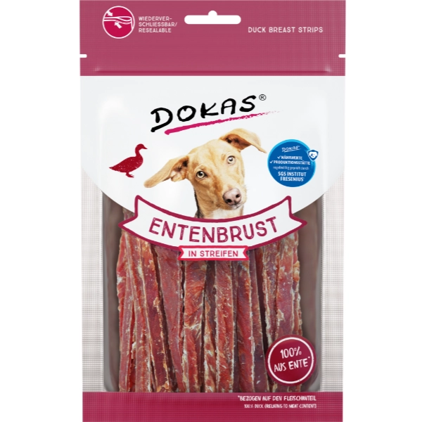 Zdravé a nízkotučné maškrtenie Dokas, ktoré miluje každý pes. Usušené prúžky kačacích pŕs sú úplne prírodné, voňavé, chutné a ideálna pre každú príležiťosť. Veľkosť je vhodná pre malé i veľké psy.