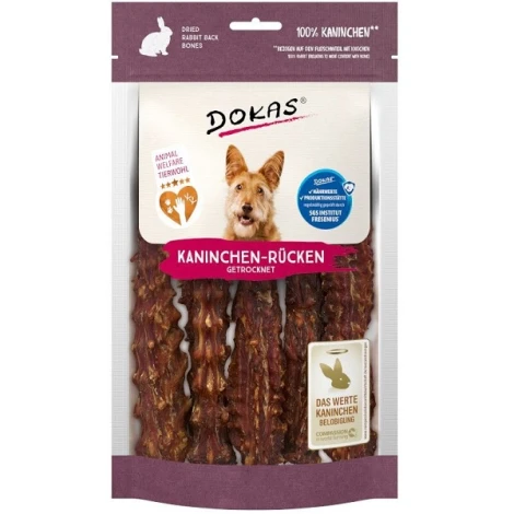 Dokas králičí chrbát s kosťou sú prírodné pochúťky, ktorých vôňa, štruktúra a vzhľad prebudia vlka v každom psovi. Králičia chrbtica je ideálna pochúťka na žuvanie, ktorá obrusuje zubný povlak a pomáha spevňovať žuvacie svaly. Vhodné aj pre alergických psov.