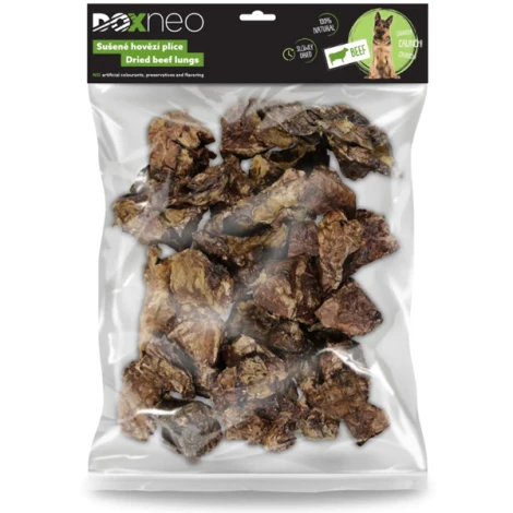 Bombastická odmena a obľúbená pochúťka pre psích miláčikov. Vďaka šetrnému spracovaniu pri nízkych teplotách je sušené hovädzie mäso Doxneo krásne voňavé a plné chuti s neodolateľnou chrumkavou štruktúrou. Môžete ním potešiť staršieho psa so zlými zubami aj spokojné šteňa so šteňacími zubami, ktoré práve objavuje svet. Hovädzie pľúca sa ľahko lámu, takže sú skvelou odmenou pri výcviku aj pre tých najzručnejších psíkov.