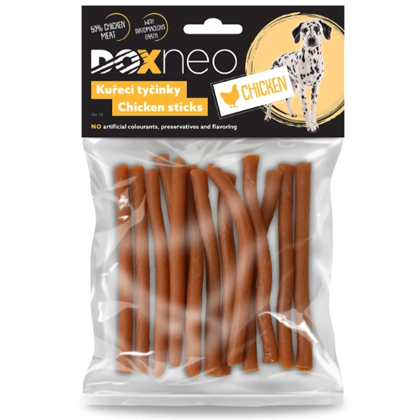 odstrániťHľadáte voňavú a chutnú pochúťku pre svojho psa? Doxneo kuracie tyčinky pre psov sú mäkké pochúťky bez obsahu obilnín, ktoré ako bonus obsahujú zdraviu prospešnú diatomitovú hlinu. Tyčinky sa dajú ľahko rozlomiť na menšie kúsky, ktoré potešia aj tých najmenších chlpáčov. Skvelá zábava pri cvičení.