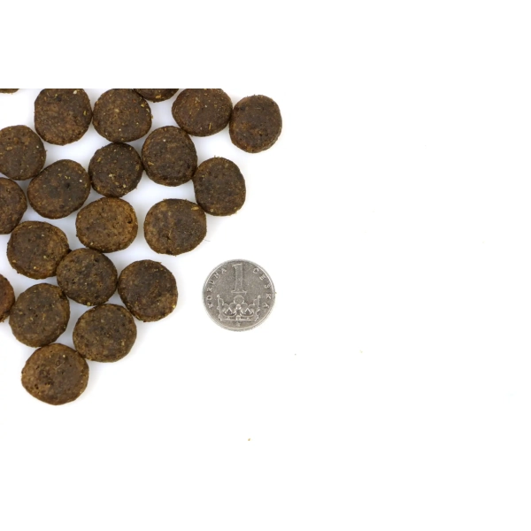 Hrubé bielkoviny 25 %, hrubý tuk 16 %, hrubá vláknina 4 %, anorganické zložky 7,5 %, vlhkosť 10 %, vápnik 1,4 %, fosfor 1,0 %, omega 3 0,1 %, omega 6 0,25 %.