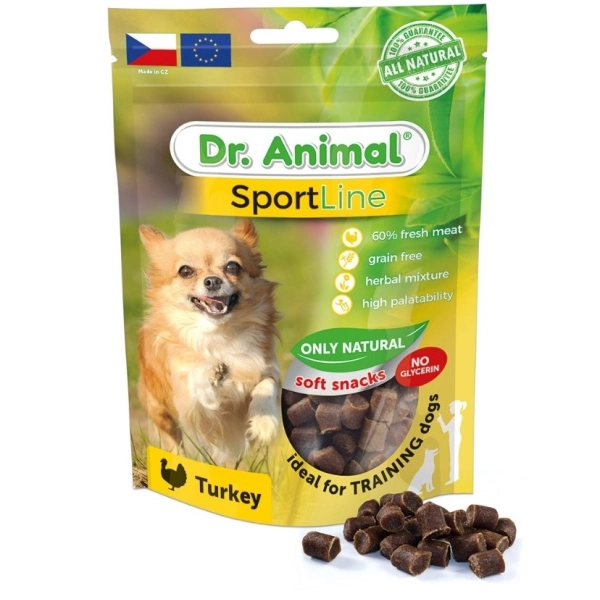 Lahodné, polomäkké žuvačky s 60% obsahom mäsa. Dr. Animal SportLine sú veľmi chutné a ľahko stráviteľné maškrty s prírodným zložením. Odporučiť ich môžeme pre všetkých psíkov, ktorí na maškrtách skrátka ulietavajú. Vďaka drobné veľkosti sú vhodné aj pre malé psy.