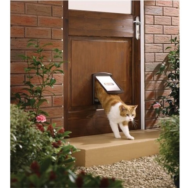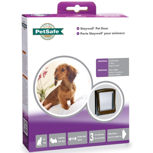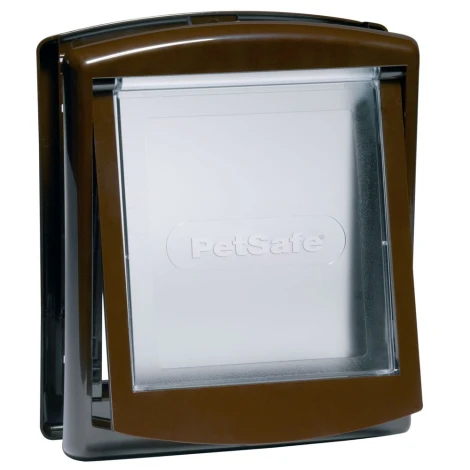 Hnedé plastové dvierka STAYWELL s priehľadným flap do steny i dverí. Určené pre mačky s hmotnosťou do 7 kg a malé psy s hmotnosťou do 3 kg.