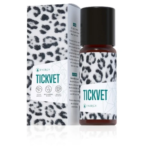 Energy Vet Tickvet obsahuje iba vybrané esenciálne oleje, ktoré zlepšujú kvalitu pokožky. Je to prírodný veterinárny prípravok, ktorý má sekundárny účinok, pretože pomáha znížiť riziko napadnutia vonkajšími parazitmi. Prípravok sa môže aplikovať na všetky domáce zvieratá, ale neodporúča sa používať na mladé, gravidné a dojčiace samice. Kvapky sú šetrné k telu zvieraťa a životnému prostrediu.