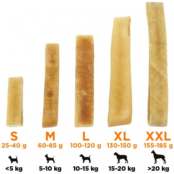 Himalájska maškrta Explorer Dog je zdravá syrová pochúťka plná prírodných bielkovín a množstva vitamínov a minerálov. Žuvanie dentálnej tyčinky zo syra vášho psa nielen zabaví, ale zároveň mu pomôže vyčistiť zuby, odstrániť zubný povlak a znížiť riziko vzniku zubného kameňa. Syr pochádza z mlieka od voľne chovaných himalájskych kráv, ktoré sa ďalej starostlivo a dlhodobo spracováva. Hodina varenia, aby sa z mlieka odstránil všetok tuk, 2 - 3 dni lisovania, aby sa odstránila vlhkosť, a potom 20 - 30 dní sušenia v udiarni, aby pochúťka krásne stvrdla a získala jemnú, dymovú chuť. Žuvacia pochúťka Explorer Dog je vhodná pre psy všetkých veľkostí, veku a plemien.