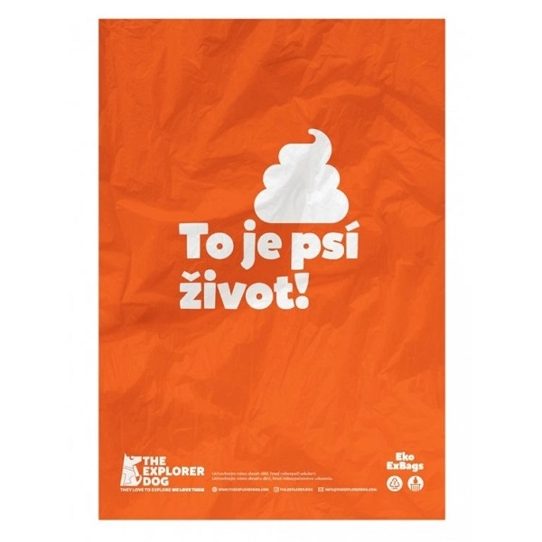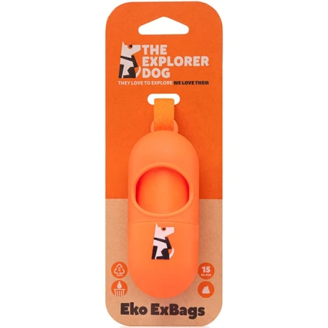 Explorer Dog zásobník na sáčky sa dá prichytiť vďaka nastaviteľnému suchému zipsu na akékoľvek vodítko. Puzdro obsahuje jednu rolku vreciek na vyskúšanie. Sáčky sú veľmi pevné, nepriepustné a ich farba je neprehliadnuteľná, takže ich nezabudnete na žiadnu prechádzku. Veľkosť je vhodná pre všetky plemená psov. Okrem toho obsahujú zlúčeninu Epi TDPATM, ktorá sa pridáva do plastov v malých množstvách a proces oxo-biodegradácie spôsobuje, že sa tašky úplne rozložia do piatich rokov.
