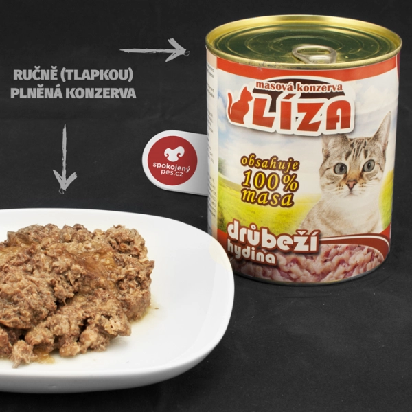 Česká, ručne plnená konzerva Falco Liza pre mačky. Obsahuje kvalitné hydinové mäso. Malé kúsky mäsa sú mäkké, prirodzene konzervované, úplne bez chemických prísad. Lahodné mäsové krmivo, ktoré si vaša mačka zamiluje.