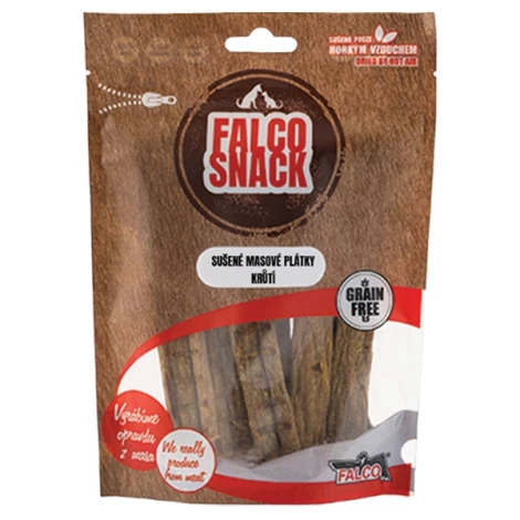 odstrániťJemné plátky morčacieho mäsa Falco s mäsitou a neodolateľnou vôňou pre psy sú lahodnou pochúťkou bez obilnín. Vďaka šetrnému sušeniu bez použitia chemických látok obsahujú veľké množstvo vitamínov. Morčacie mäso je veľmi ľahko stráviteľné a je bohatým zdrojom bielkovín.