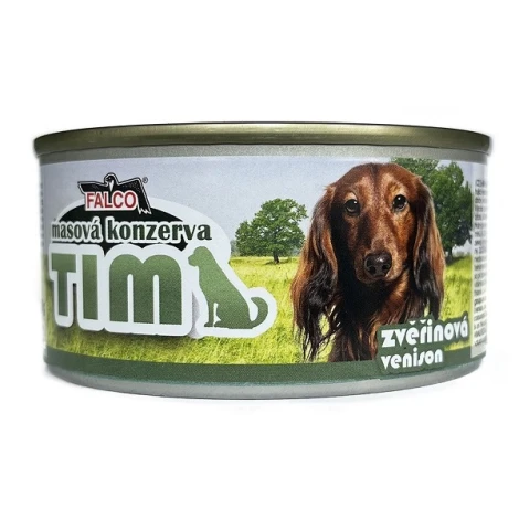 Falco Tim je jemne mletá konzerva pre psy, vyrobená zo 100 % mäsa a vnútorností. Kombinácia zveriny a vnútorností je veľmi chutná, výživná a šťavnatá. Ďalšia skvelá konzerva od českého výrobcu Sokol Falco.