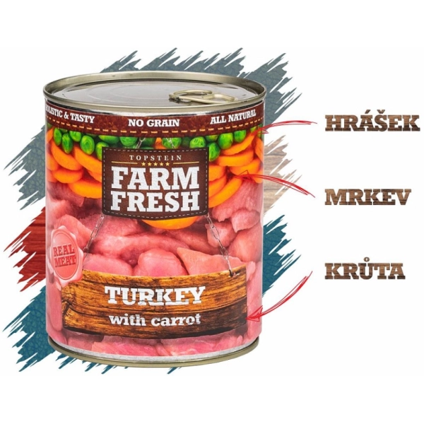 Keď sa v miske stretne morčacie mäso s mrkvou a hráškom, obyčajné jedlo sa zmení na niečo výnimočné. Čistá receptúra krmiva Farm Fresh bez obilnín a chemikálií ponúka primeranú dávku mäsa, najkvalitnejšie prísady a optimálnu podporu zdravia a vitality vášho maznáčika.