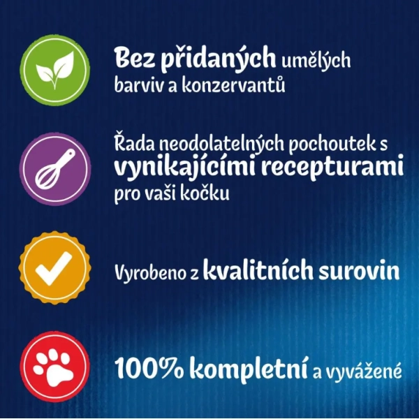 hovädzieho mäsa, kuracieho mäsa, lososa a tuniaka voňajú a chutia tak lahodne, ako keby ste si ich sami uvarili. Vyrobené bez umelých farbív a konzervačných látok. Sú tiež zdrojom esenciálnych omega-6 mastných kyselín a