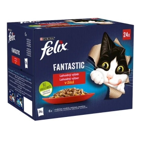 Neodolateľné krmivo pre dospelé mačky Felix Fantastic Multipack obsahujúce 24 kapsičiek. Každá receptúra je vyrobená z kvalitných surovín a obsahuje chrumkavé kúsky s konzistenciou podobnou želé, aby si vaša mačka mohla dopriať chutné sústo!