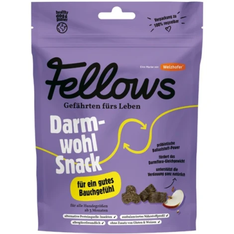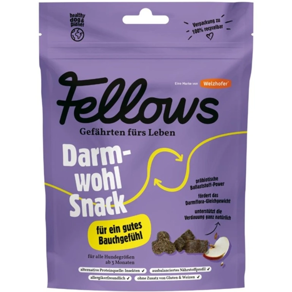 Fellows Darmwohl hmyzie pochúťky pre psov sú ľahkou a chutnou pochúťkou pre psy s citlivým trávením - plné vlákniny, prebiotík a kvalitných hmyzích bielkovín. Vďaka ľahko stráviteľnej pufovanej ryži nezaťažujú žalúdok a vďaka prebiotickým a antimikrobiálnym vlastnostiam kyseliny laurovej podporujú rovnováhu črevnej mikroflóry. Zdravá a jemná pochúťka, ktorá sa spolieha na úplne prírodné a udržateľné zložky.