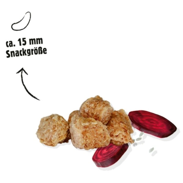 Hmyzie pochúťky pre psov Fellows Formfreunde na chudnutie a udržanie hmotnosti. Ideálne pre psov, ktorí milujú odmeny, ale chcú sa udržať vo forme - ľahké, neodolateľne chrumkavé a plné dobrej energie z červenej repy. Vďaka hmyzím bielkovinám a pufovanej ryži potešia aj citlivé brušká.