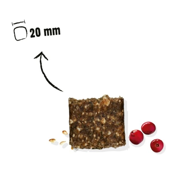 Hmyz 24 % (Hermetia illucens* a Hermetia illucens oil), zemiaky*, rastlinný glycerín, zemiakový škrob, ľanové semienko 4 %, pivovarské kvasnice 3,5 %, brusnice 2 %.