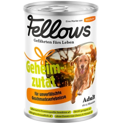 Ano, je to z hmyzu. A práve preto je to také dobré - pre psa aj pre prírodu. Konzerva pre psov Fellows Tajná prísada ponúka nielen atraktívnu chuť, ale aj vynikajúcu výživu. Hermetia illucens je udržateľnou alternatívou mäsových bielkovín - ideálna pre psov s potravinovými alergiami. Nespúšťa obrannú reakciu imunitného systému a napriek tomu poskytuje všetky dôležité živiny, ktoré pes potrebuje pre zdravý a aktívny život. Konzerva sa môže používať ako osvieženie bežnej stravy - granúl alebo BARF - alebo ako chutná desiata počas dňa.