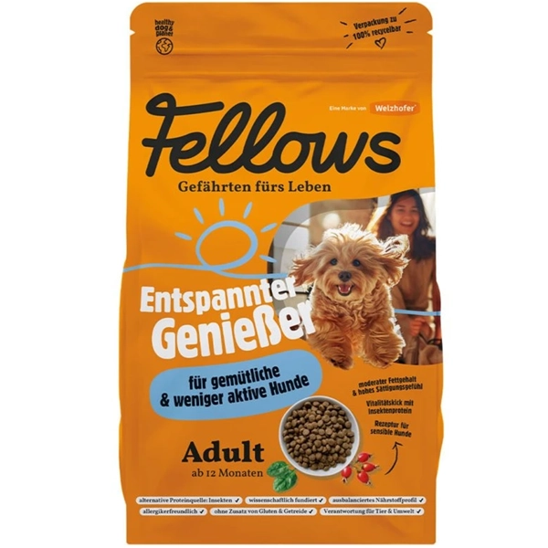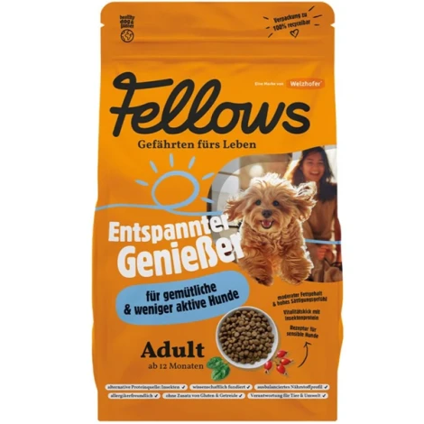 Pre gaučových fajnšmekrov a mestských elegánov. Hmyzie granule Fellows Pohodový gurmán sú ideálnym krmivom pre psov s pokojnejším tempom. Znížený obsah tuku, kvalitné hmyzie bielkoviny a vláknina zo zemiakov a šošovice zabezpečia nasýtenie bez zbytočnej záťaže, podporujú trávenie, vitalitu a zdravú srsť.