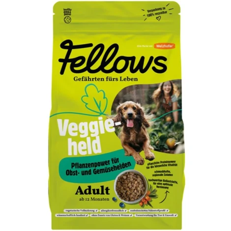 Ideálna dávka energie z prírody bez živočíšnych bielkovín! Fellows Veggieheld kompletné vegetariánske krmivo pre dospelé psy všetkých plemien - čistá rastlinná bielkovinová energia, ktorá poskytuje všetky základné stavebné prvky pre silné svaly a aktívny život. Extra porcia živín pre príjemný pocit v žalúdku po každom jedle na podporu zdravia a dobrého trávenia.