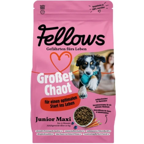 Ideálny štart do života pre vášho veľkého dobrodruha. Kompletné krmivo Fellows Veľký nezbedník je vďaka vysokokvalitným hmyzím bielkovinám a optimálnej energetickej hodnote dokonale prispôsobené špecifickým požiadavkám šteniat veľkých plemien (nad 20 kg v dospelosti) od 2 do 15 mesiacov. Obsahuje všetky potrebné živiny pre zdravý telesný a duševný vývoj a zabezpečuje rovnomerný rast bez preťažovania kĺbov.