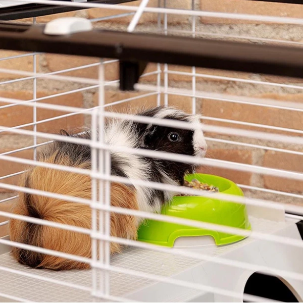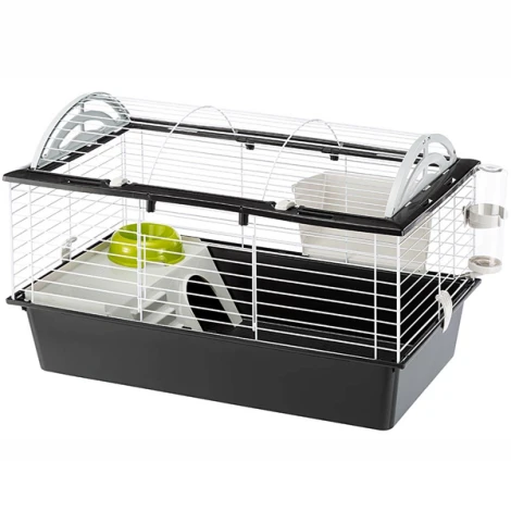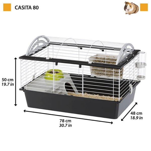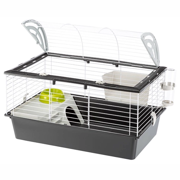 Ferplast Casita klietka pre králiky a morčatá. Klietka má plne snímateľnú strechu a odnímateľný spodný diel, ktoré uľahčia upratovanie a manipuláciu. Priestranná klietka disponuje zasúvacími dvierkami a funkčným vybavením pre plnohodnotné bývanie hlodavčíka.