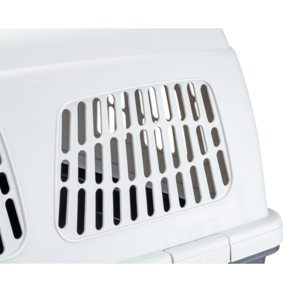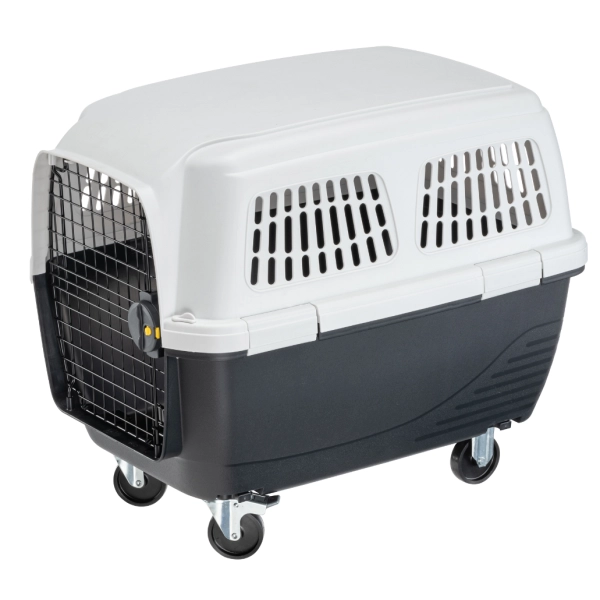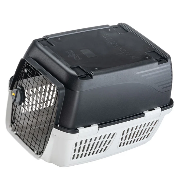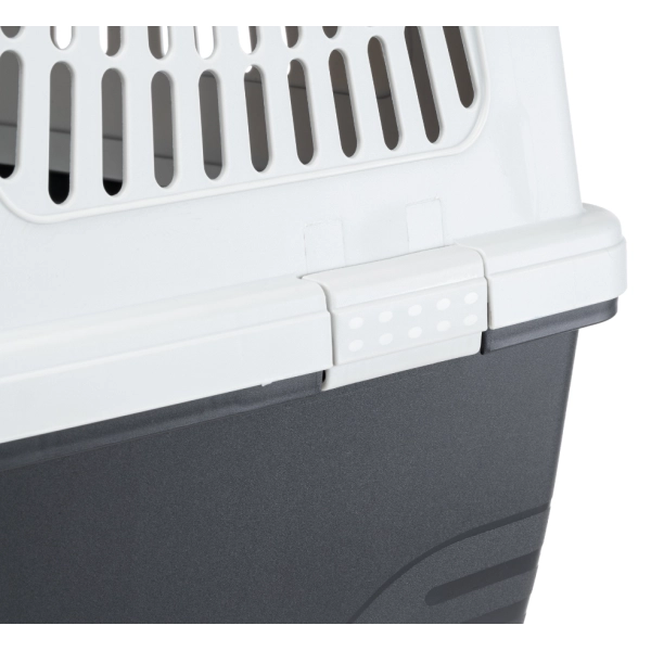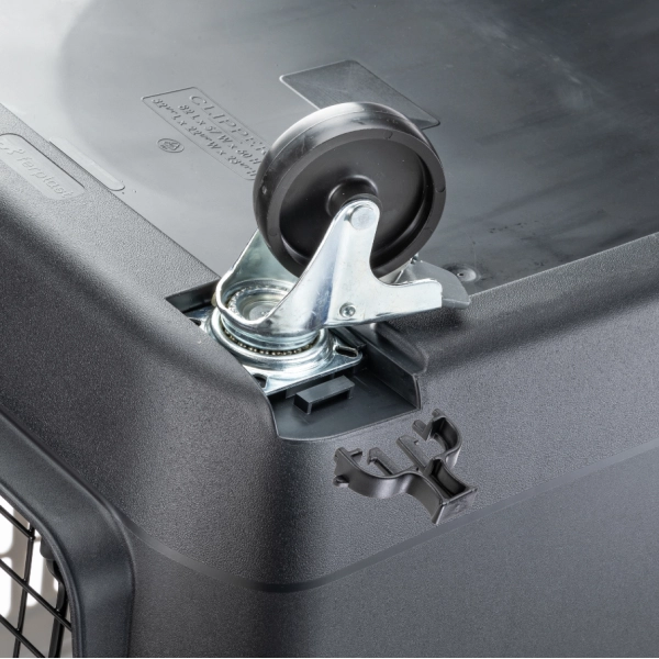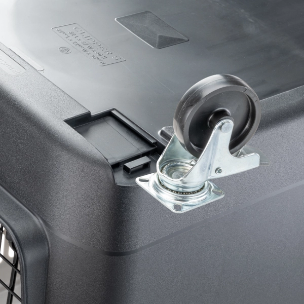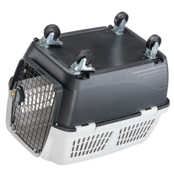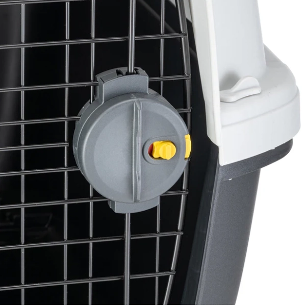 Kovové dvere sú vybavené spoľahlivým bezpečnostným uzamykacím systémom - otočným zámkom a dvoma bočnými západkami, ktoré chránia dvere pred nechceným otvorením. Vrchnú a spodnú časť možno od seba ľahko oddeliť, takže prepravku možno v prípade potreby ľahko umyť a vyčistiť. Na pohodlné premiestňovanie prepravky možno k spodnej časti pripevniť kolieska, ktoré je možné dokúpiť.