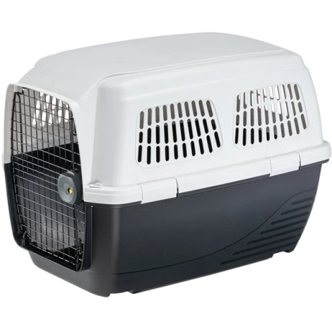 Prepravka Ferplast Clipper 5 pre stredné a veľké psy umožňuje bezpečné a pohodlné cestovanie. Robustná konštrukcia, kovové dvierka s bezpečnostným zámkom, množstvo otvorov pre čerstvý vzduch a možnosť pripojenia koliesok. Ideálna na leteckú prepravu.