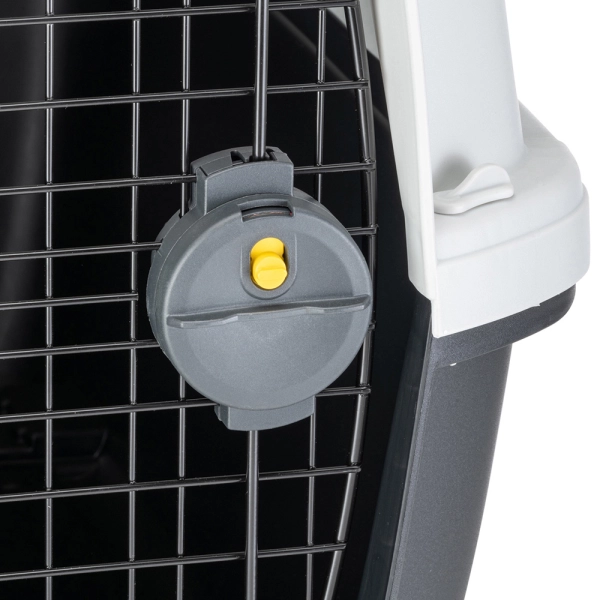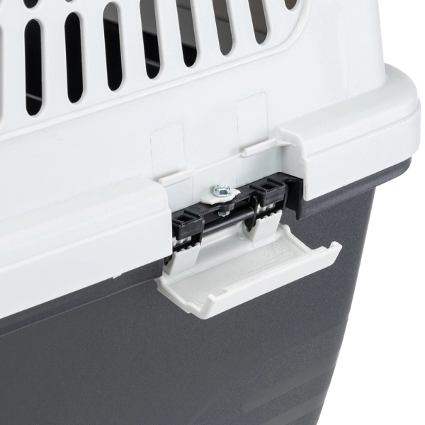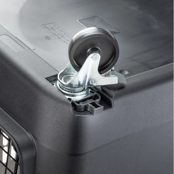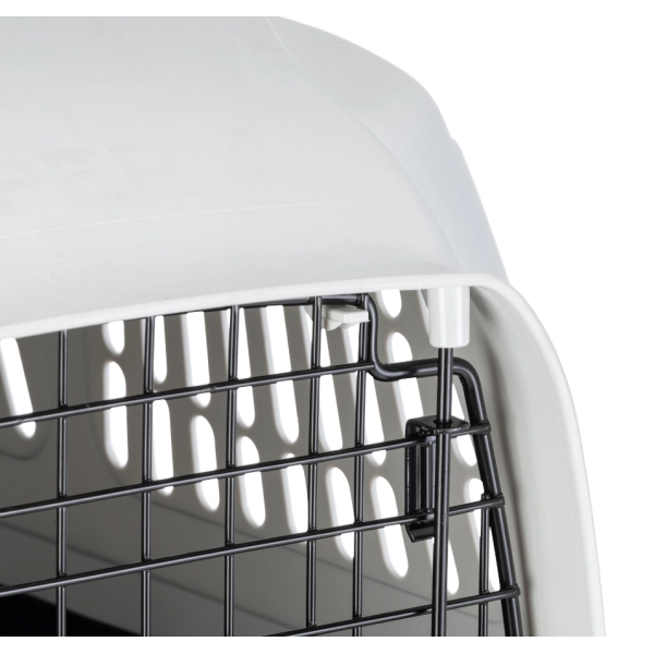 Kovové dvere sú vybavené spoľahlivým bezpečnostným uzamykacím systémom - otočným zámkom a dvoma bočnými západkami, ktoré chránia dvere pred nechceným otvorením. Vrchnú a spodnú časť možno od seba ľahko oddeliť, takže prepravku možno v prípade potreby ľahko umyť a vyčistiť. Na pohodlné premiestňovanie prepravky možno k spodnej časti pripevniť kolieska, ktoré je možné dokúpiť.