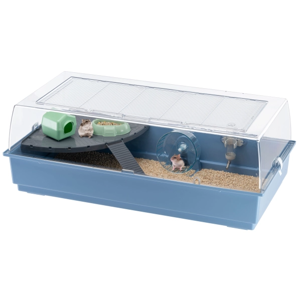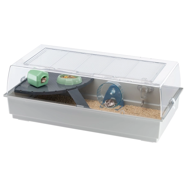 Ferplast Duna Maxi je plastový box ideálny pre škrečky a myši. Chráni výbeh pred prievanom a zabezpečuje stabilnú teplotu. Odolný plast uľahčí čistenie, zatiaľ čo vrchná časť z drôteného pletiva zabezpečí správne vetranie.