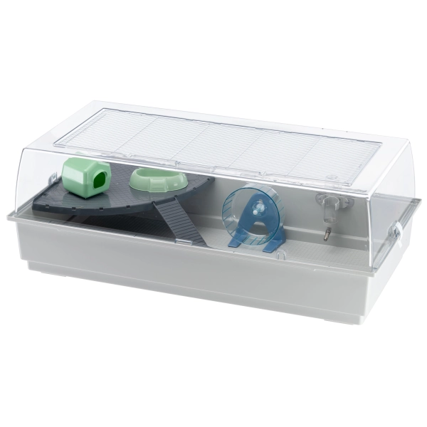 Ferplast Duna Maxi je priestranný plastový box vhodný pre škrečky a myši, ktoré potrebujú stabilné prostredie bez prievanu a vyššiu teplotu. Klietka je vyrobená z odolného plastu, ktorý uľahčuje jej údržbu. Vrchná časť z drôteného pletiva zabezpečuje optimálne vetranie, zatiaľ čo odnímateľná priehľadná plastová strecha umožňuje ľahký prístup k zvieratku a jednoduché čistenie.