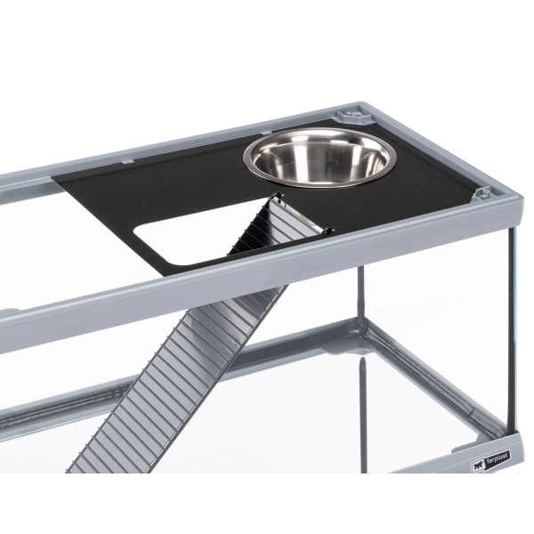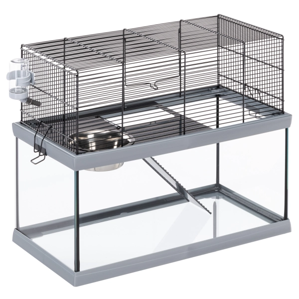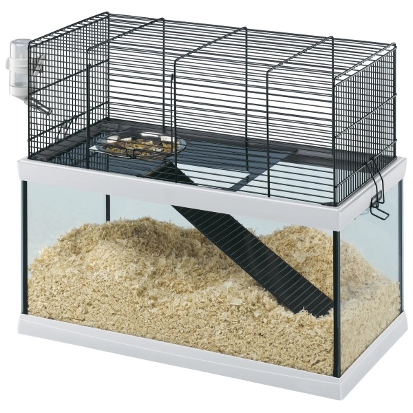Útulná klietka Ferplast Gabry 50 má vysoké sklenené steny, ktoré dokonale držia podstielku a umožňujú škrečkom prirodzene sa zahrabať. Ponúka jedno poschodie s praktickým rebríkom, napájačkou, miskou a jednoduchým otváraním na každodennú starostlivosť. Naplňte teda klietku obľúbenou podstielkou vášho škrečka či myšky a sledujte, ako si vo svojom malom svete vytvára tunely a bunkre. Nebudete chcieť ani zapnúť televíziu!