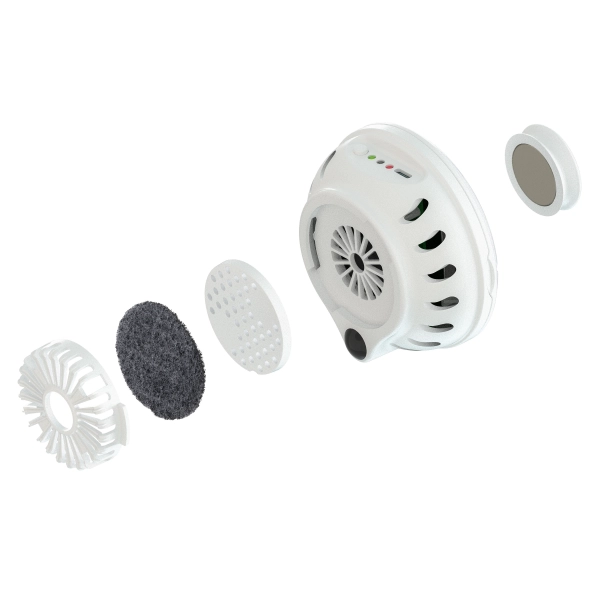 Ferplast Genicair Bianco je kompaktný pohlcovač zápachu, ktorý sa postará o čerstvý vzduch v okolí mačacieho záchoda. Stačí ho pomocou magnetu pripevniť na akýkoľvek typ toalety a vďaka zabudovanému snímaču pohybu začne pracovať presne vtedy, keď je to potrebné. Vo vnútri sa nachádza tichý ventilátor, ktorý nasáva vzduch a prevádza ho cez špeciálny pachový filter Feline Breeze s originálnou zmesou vôní. Výsledkom je čistejšie a príjemnejšie voňajúce prostredie bez rušivých pachov.
