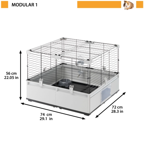 Klietky radu Modular sú k dispozícii v štyroch rôznych moduloch, ktoré sa dajú kombinovať a vytvoriť tak originálny priestor podľa potrieb vášho domáceho maznáčika a priestoru, ktorý máte doma na klietku k dispozícii.