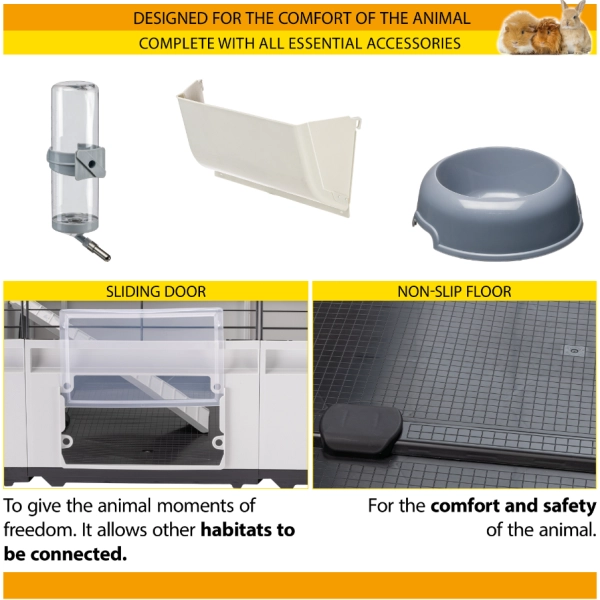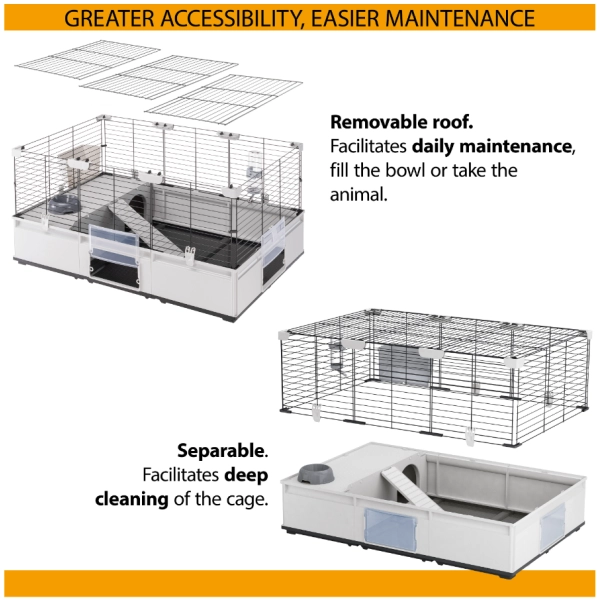 Vytvorte pre svojho domáceho miláčika prostredie, v ktorom bude môcť čarovať podľa svojich predstáv. Modulárne klietky Ferplast ponúkajú inovatívne a flexibilné riešenie na chov králikov a morčiat. Rôzne typy modulárnych klietok poskytujú vášmu hlodavcovi dostatok priestoru na spokojný život. Jednoduché rozkladanie klietky urýchľuje čistenie, vysoká základňa udržiava okolie klietky čisté a vnútorná protišmyková podlaha pomáha udržiavať vášho hlodavca v bezpečí.