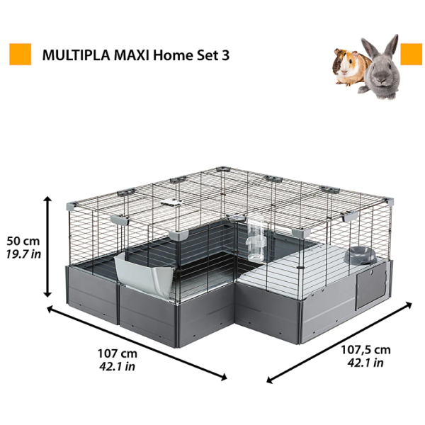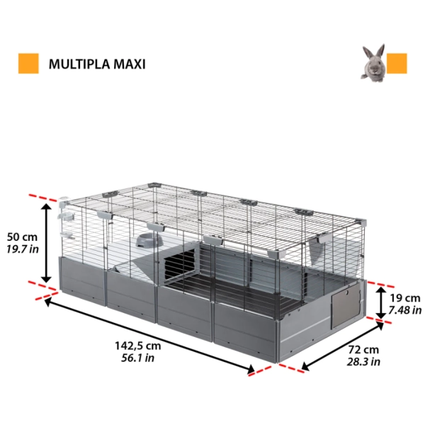 Ferplast Multipla Maxi klietka pre hlodavce poslúži ako ubikácia pre malé zvieratá. Vďaka plastovému dnu sa klietka dobre čistí a vďaka vysúvacím dvierkam je možné zvieratko pustiť dvojakým spôsobom. Ubytovanie je možné skombinovať s iným typom klietky od rovnakého výrobcu. Týmto spôsobom si môžete doladiť bývanie vášho maznáčika podľa svojich predstáv. Klietka obsahuje základné vybavenie, ktorým je domček s rebríkom, mištička, napájačka na vodu a senník.