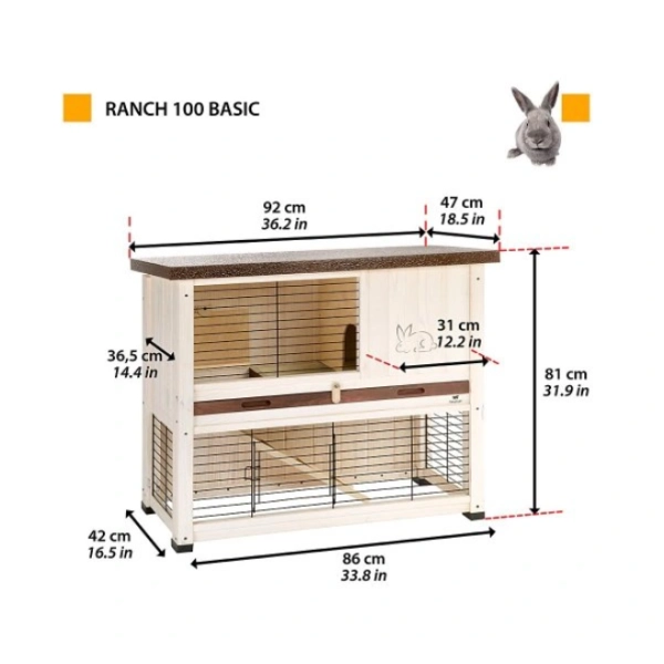 Krásna drevená klietka pre králiky Ferplast Ranch 100 Basic, ktorú možno použiť na vylepšenie interiéru alebo postaviť v záhrade. Klietka je jedinečne navrhnutá tak, aby spĺňala všetky každodenné potreby vášho králika. Strecha klietky je výklopná a doska na podstielku je výsuvná, vďaka čomu je čistenie veľmi jednoduché.