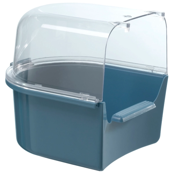 Kúpeľňa Ferplast Trevi je ideálnym doplnkom pre kanáriky a iné malé vtáky. Umožňuje opereným priateľom kúpať sa v úplnom pokoji. Kúpeľňa je vybavená základňou, do ktorej sa dá naliať voda, a užitočným bidlom na odpočinok. Priehľadný kryt zabraňuje striekajúcej vode a zabezpečuje vtákom pohodlný vstup. Vaničku možné ľahko pripevniť do dverí klietky.