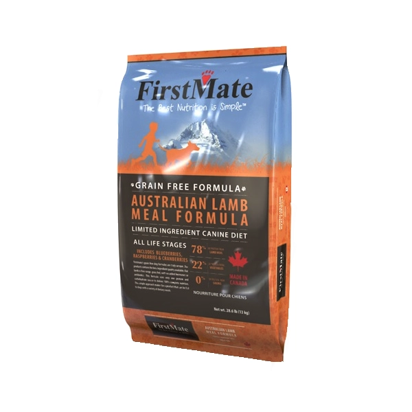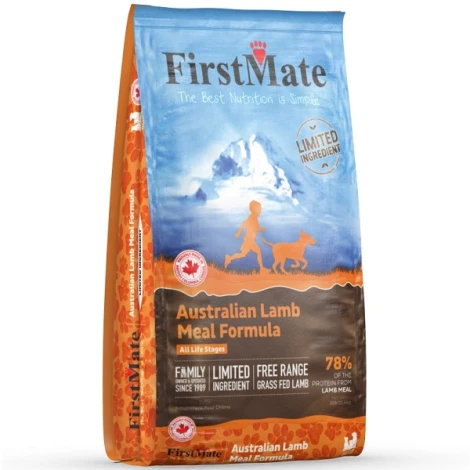 Holistické krmivo FirstMate Australian Lamb. Ultraprémiová, hypoalergénna formula pre dospievajúce psy, dospelé i staršie jedince. Vhodná aj pre jedince, ktoré neznášajú alebo neprijímajú ryby, neobsahuje ani rybí tuk, posilňuje imunitný systém, pomáha dosiahnuť ideálne osvalenie, zbavuje nadbytočný tuk. Podporuje zdravie kĺbového systému (výstavba, hydratácia, protizápalový vplyv), vynikajúce ako prevencia aj diéta pri kožných ťažkostiach (zápaly kože, svrbenie, lupiny), tráviacich ťažkostiach.