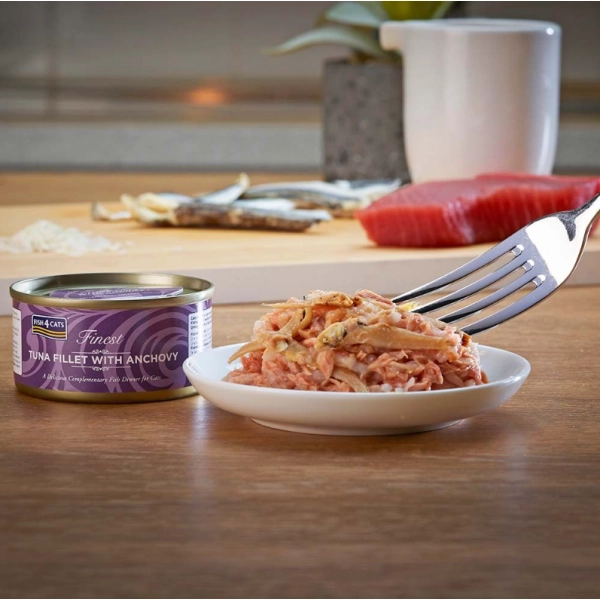Konzerva Fish4Cats Finest je kompletné vlhké krmivo pre mačky. Obsahuje vysoký podiel rýb, omega 3 mastné kyseliny a ľahko stráviteľné bielkoviny. Keďže ryby sú pre mačky prirodzenou súčasťou stravy, konzervy si okamžite obľúbia. Je to chutné a zdravé krmivo, ktorým možno mačky kŕmiť dlhodobo. Konzerva neobsahuje obilniny, pridané sacharidy ani lepok.